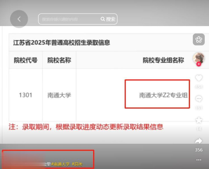 但说归说,闹归闹,南通大学的综合实力还是一所十分值得选择的院校,从该学子发布的内容中可以看出,录取她的学院是Z2专业组,专业也算的上是该校的王牌专业。